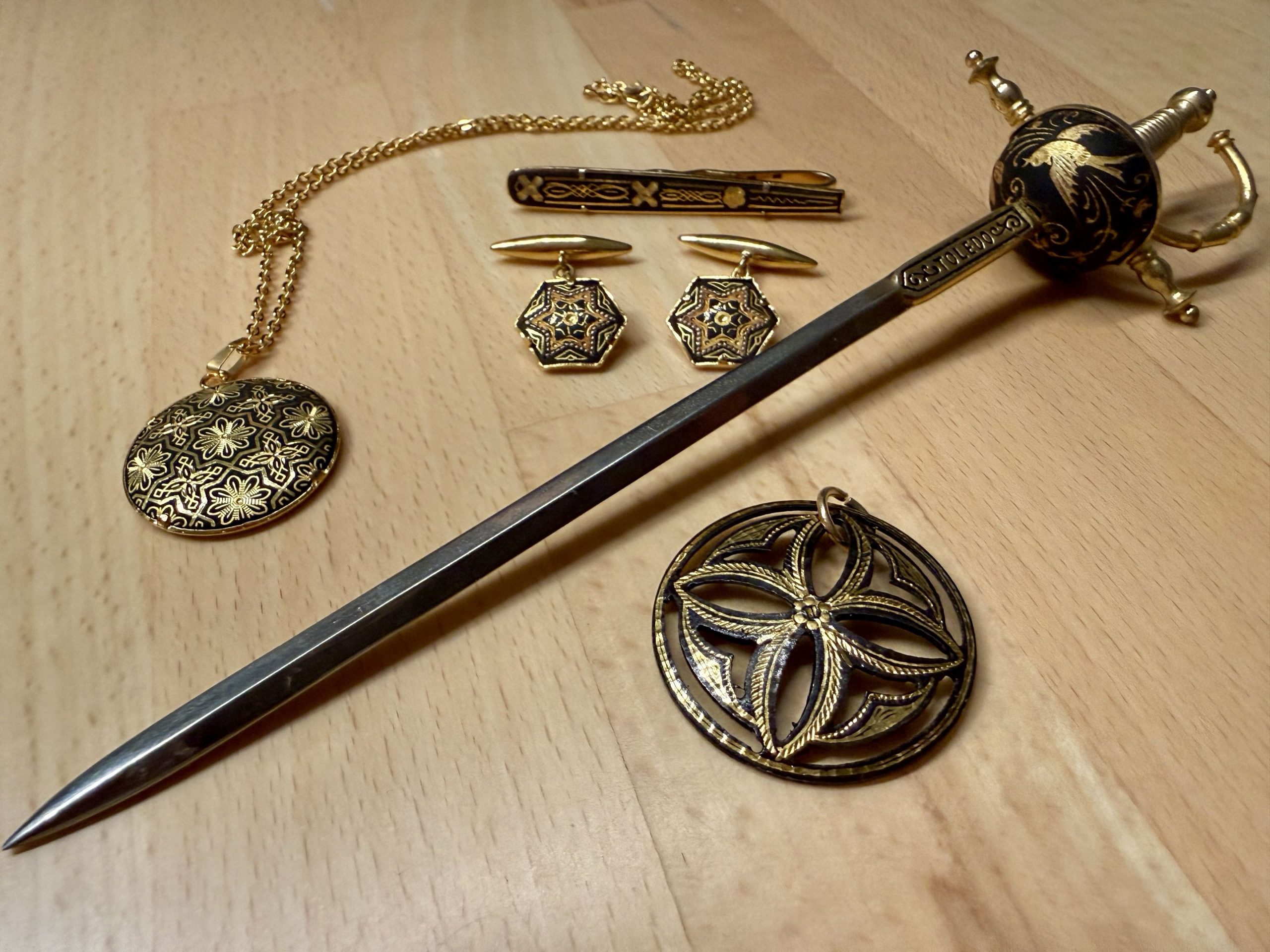 - Einer der letzten handwerklichen Betriebe der Damaszener Goldkunst in Toledo: Simón Artesanía, Pl. San Vicente, 1, 45001 Toledo, Spanien (WhatsApp +34 635 09 57 51)